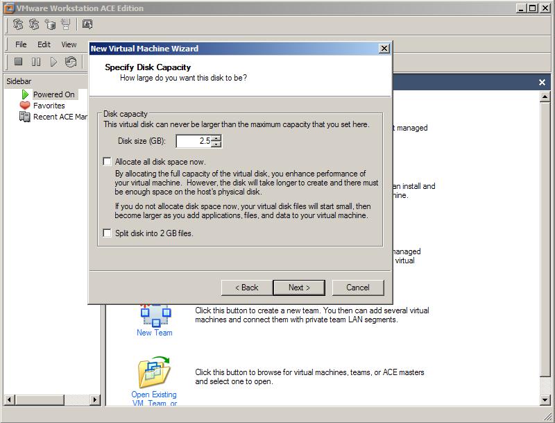 ต่อไปเป็นการกำหนดขนาดของ Disk ก่อนกำหนดควรตรวจสอบพื้นที่ของ Disk ปัจจุบันด้วยนะครับว่าเหลืออยู่เท่าไหร่ ตามตัวอย่างด้านล่างผมเลือก 2.5 GB